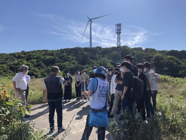 セミナー3日目は、小泊の漁業関係者と懇談を通じて環境整備について理解を深め、龍飛のウインドファームでは保安監督員の方から風車の実情を学びました。