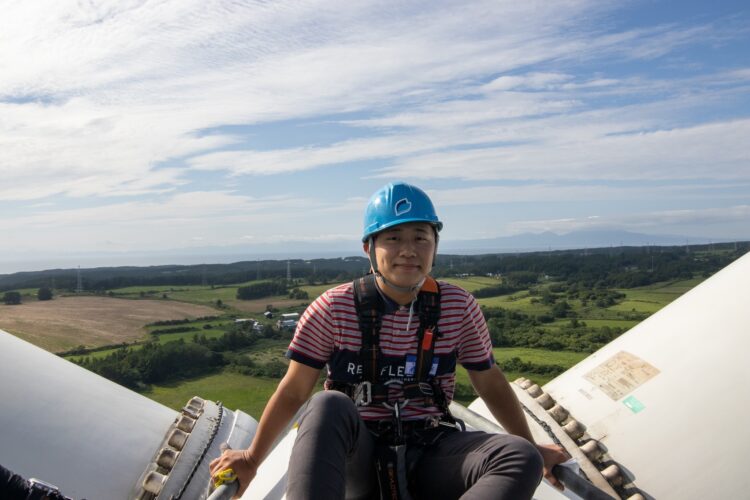 セミナー2日目は、六ケ所村・イオスエンジニアリング&サービスにて高さ約65mの風車に登頂し、風車の保守管理について学びました。