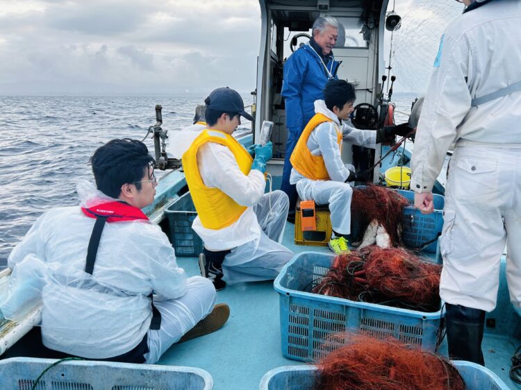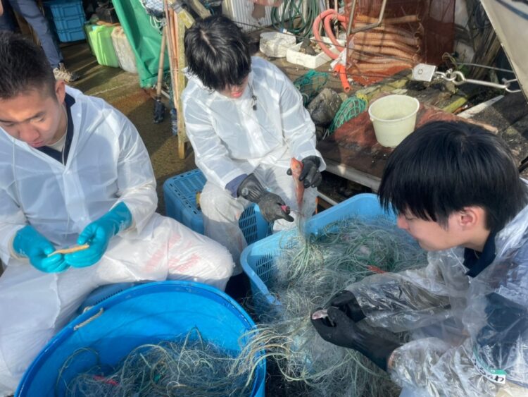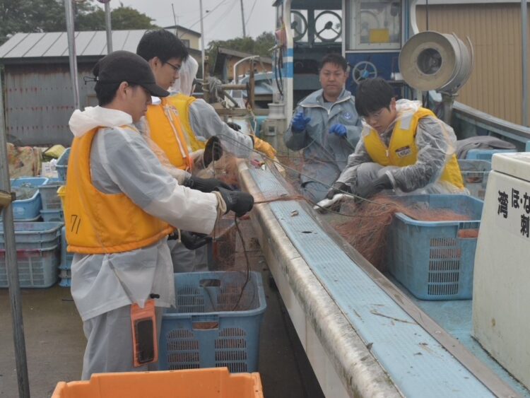 野辺地町漁業組合様にご協力いただき、漁業体験(刺し網操業や網外し)をしました。