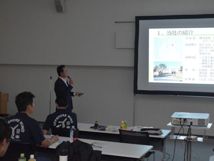 青森県内の風力発電事業者(株式会社岡山建設様、森山ディーゼル株式会社様)よりご講演いただき、風力発電事業やメンテナンスの重要性について理解を深めました。