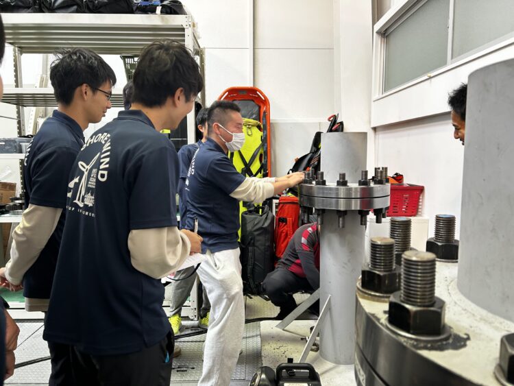 セミナー2日目は、六ケ所村のイオスエンジニアリング&サービス株式会社様にて、メンテナンス体験や風車登頂をさせていただきました。
